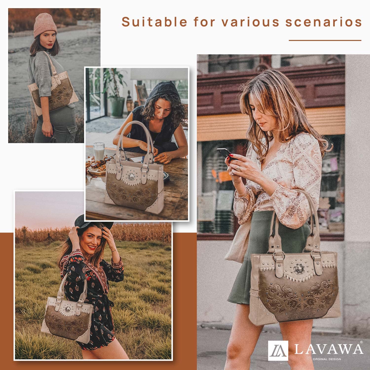 - 💝💝【Perfect size】western purses size 12" (L) X 4.5"(W) X9.3" (H).This tote bag has been designed for women on-the-go by providing security and comfort.