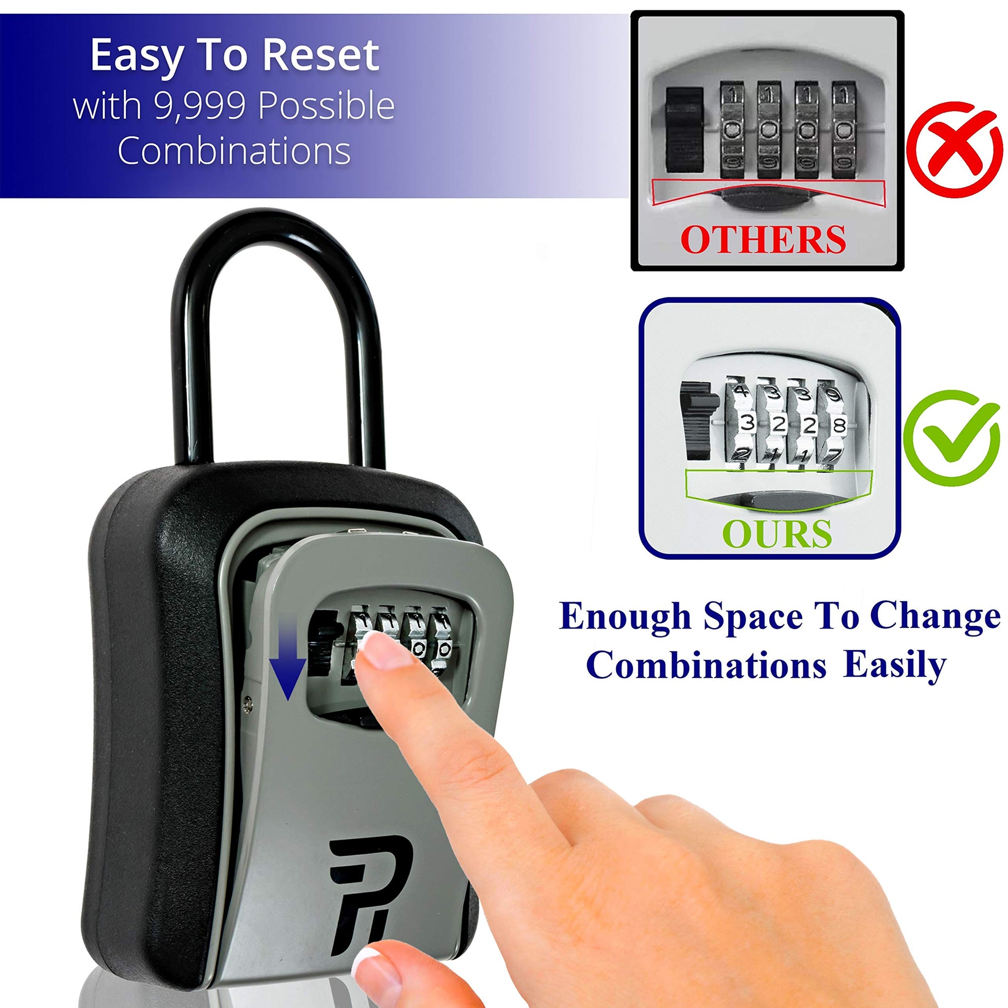 - Durable Lockable Keybox; our lockbox is built with high grade rust and corrosion-resistant aluminum alloy and heavy duty stainless steel to the highest quality standards and tough enough to withstand hammering, sawing, and prying.