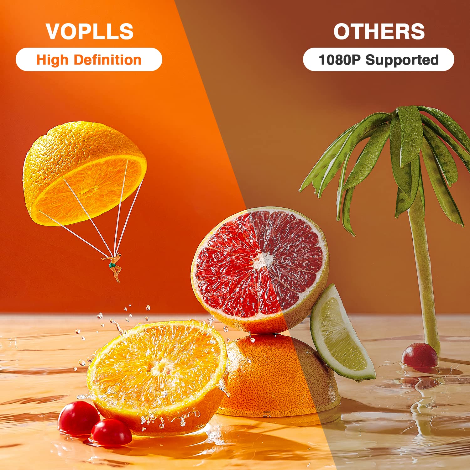 - [2024 Upgraded HD Video Projector]: VOPLLS upgraded home projector supports1080P Full HD resolution, adopts advanced LED and uniform illumination technology, which make the edges of the projection brighter and clearer. These ensure the projection image quality presents a real, dynamic, and color-vibrant effect.