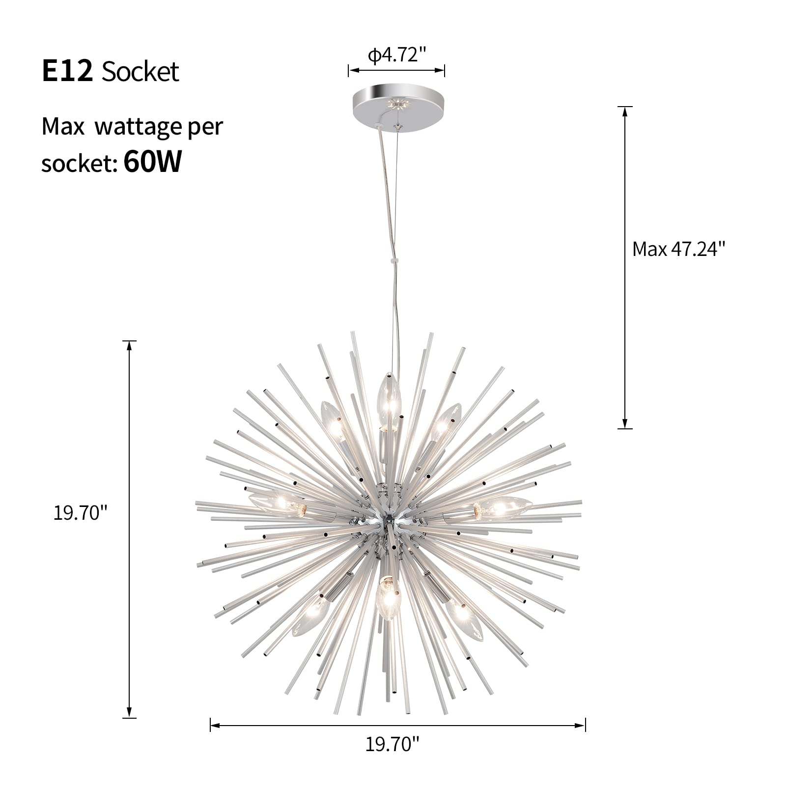 - 【9×E12 Sockets】: Please apply 9×E12 socket bulbs to this satellite pendant light fixtures, 120V, Max 60W for each bulb. It is also fully dimmable when used with a dimmable bulb and dimmer switch. You can choose different style bulbs and color temperatures to create different atmospheres. [NOTE: The BULB and Dimmer Switch NOT INCLUDED.]