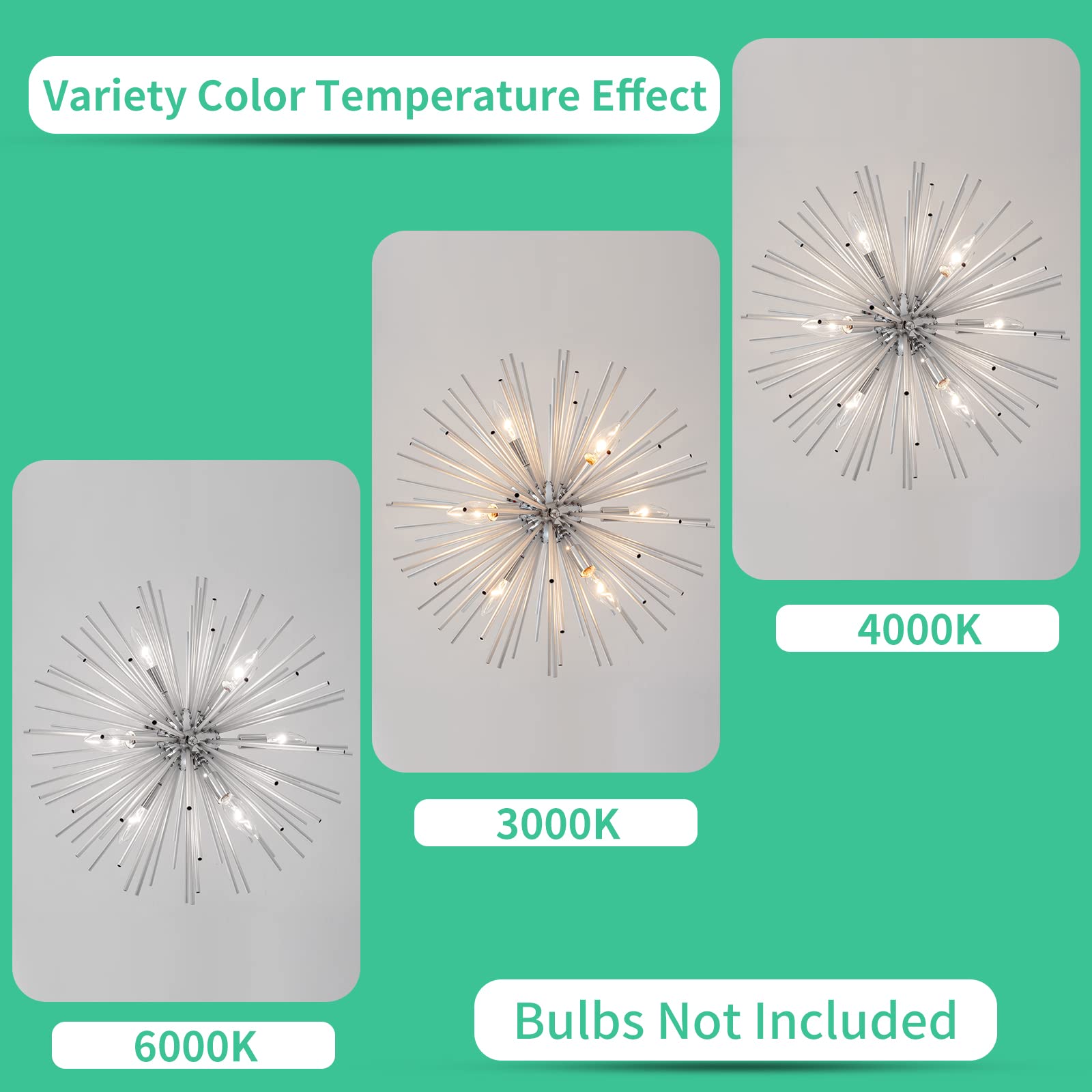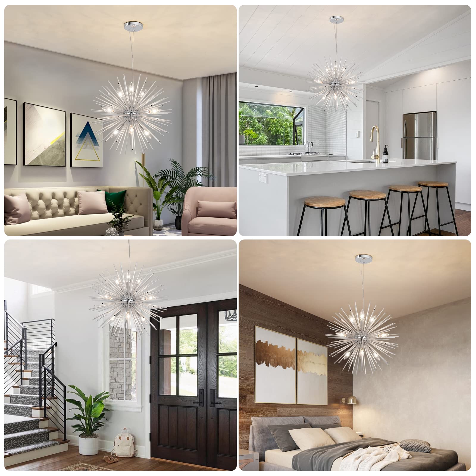 - 【Unique Sputnik Firework Design】: This modern firework chandeliers is designed with satellite shape, look beautiful and elegant. Chrome wrought aluminum rods flash with a bright light gives a modern and eye-catching enjoyment that can decorate your home more beautiful and unique.