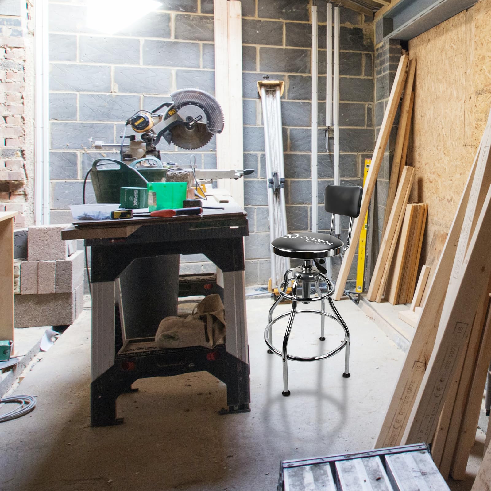 - Rotating Heavy Duty Stool: Seat rotates 360 degrees for maximum flexibility in the garage, workshop, home or office; Features rust resistant high polish chrome and premium grade double ring leg construction for durability