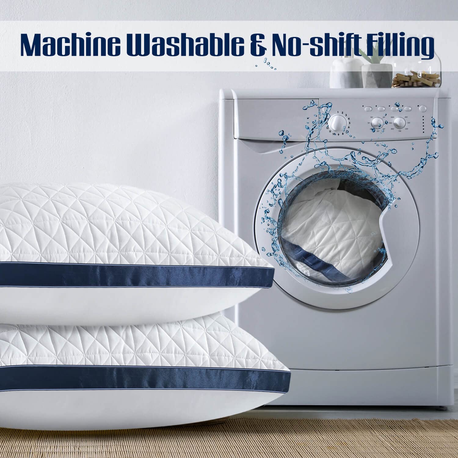- EASY HOME CARE: Our pillows are machine washable with tumble dry low, no-shift filling after washing, no clumping and always like new. Queen size measures 19 * 28 inch, fit for standard pillow case. It come with vacuum-sealed for shipping, once opened it will start to fluff up, please leave 48 - 72 hours for the pillows to get to full thickness before using them. Fluff the pillow regularly will retain its shape for long time use