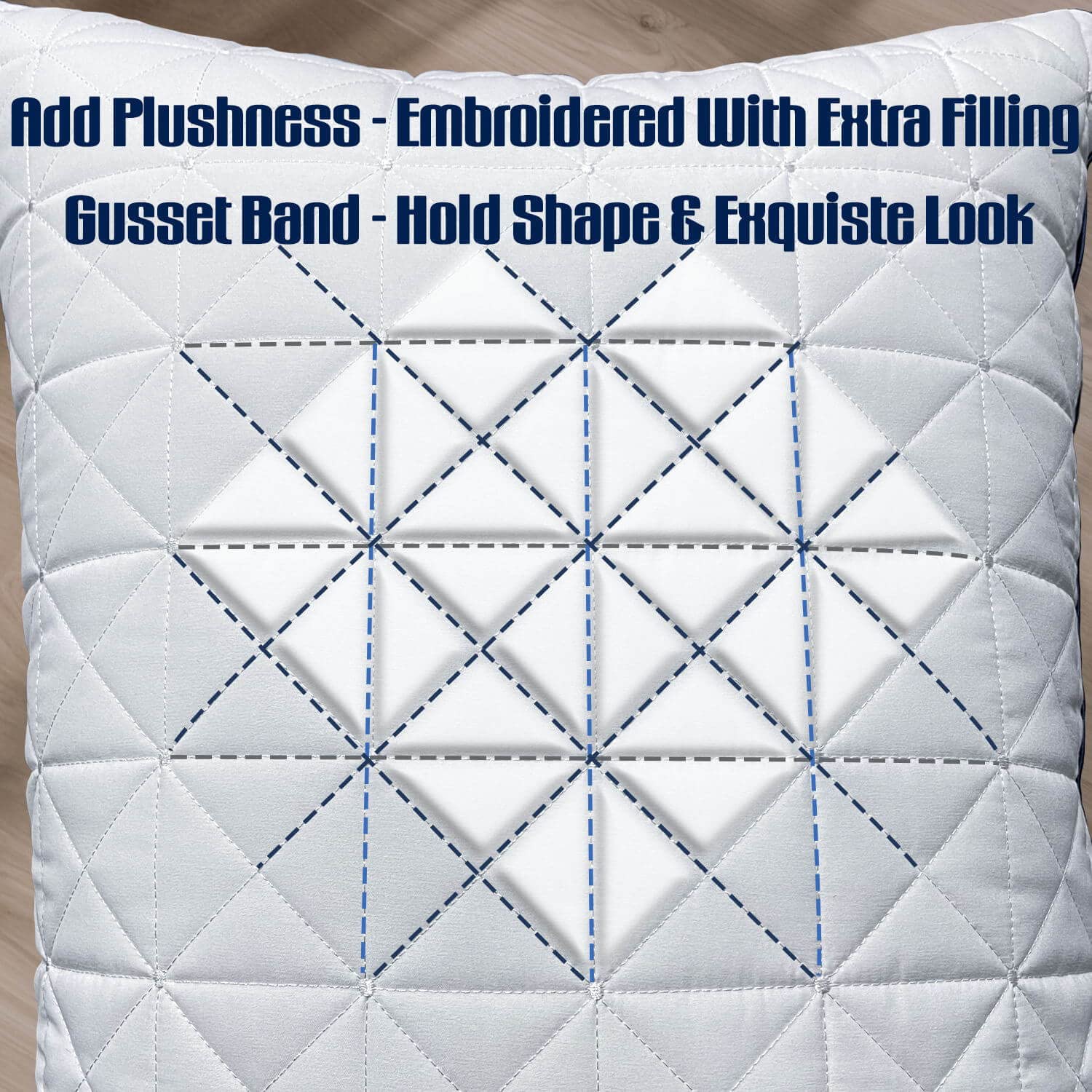 - EXQUISTE DETAILS PILLOWS: Our Pillows are added quilted embossing on front side, it embossed with extra filling to make it more plush, other side is normal side, you will have two choice for your prefer side. Double piping craft with sapphire blue gusseted band design not only give a better look, but also helps hold it's plush shape, won’t flatten out after longtime use. Each details are aim to maximizing its‘ comfort and improving your sleeping experience