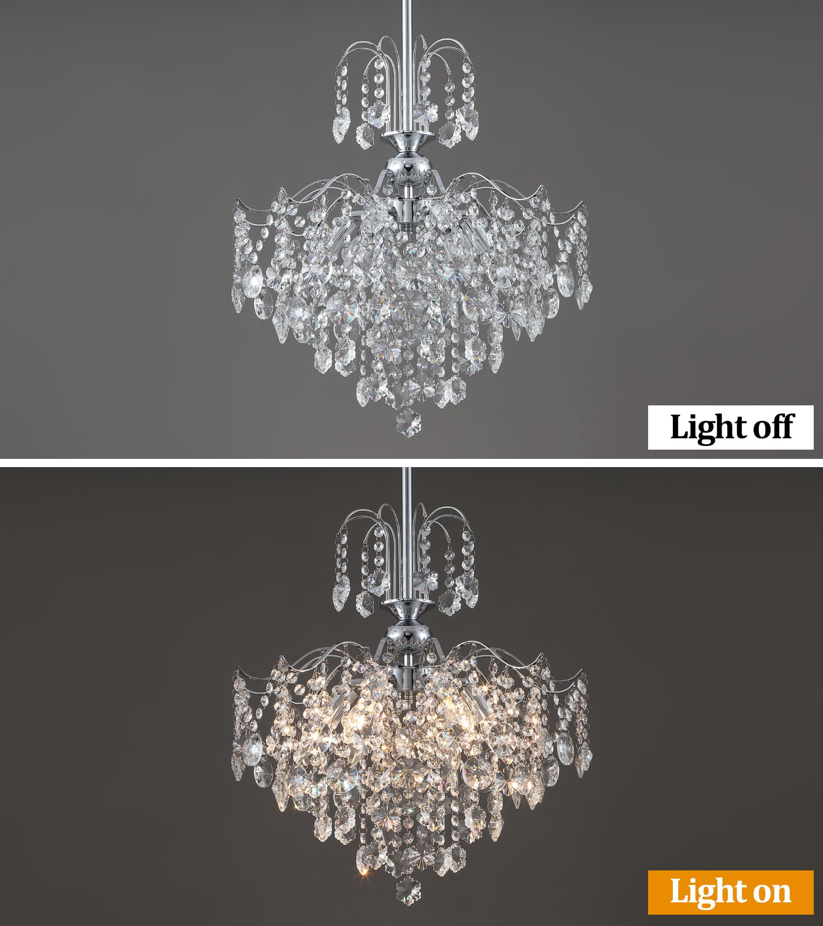 - Versatile Lighting Solution:With dimensions of D17 IN x H28.74 IN also with 47.3 IN chain and 6 E12 bulb sockets,this chrome crystal chandelier is compatible with various E12 bulb types(LED,halogen,dimmble bulbs),bulbs not included.Allowing you to customize the brightness and ambiance of any room.Featuring an adjustable hanging chain,this chrome crystal pendant light can be easily tailored to suit the height and space requirements of your dining room,bedroom,bathroom,or living room.