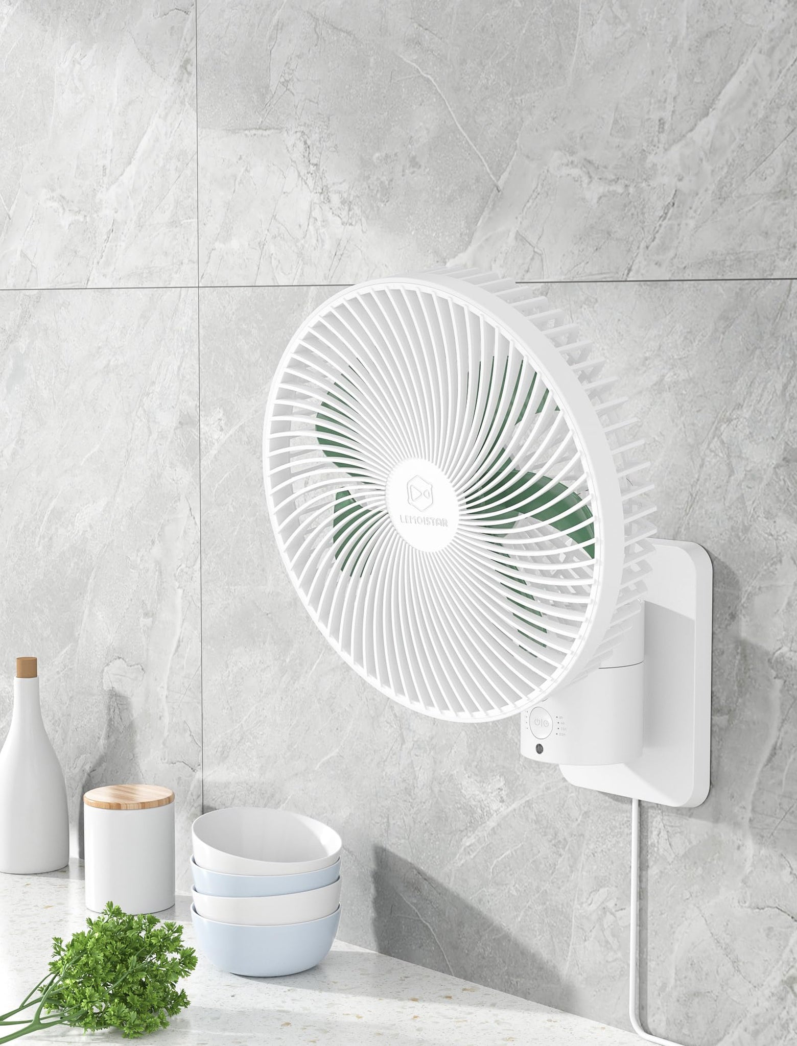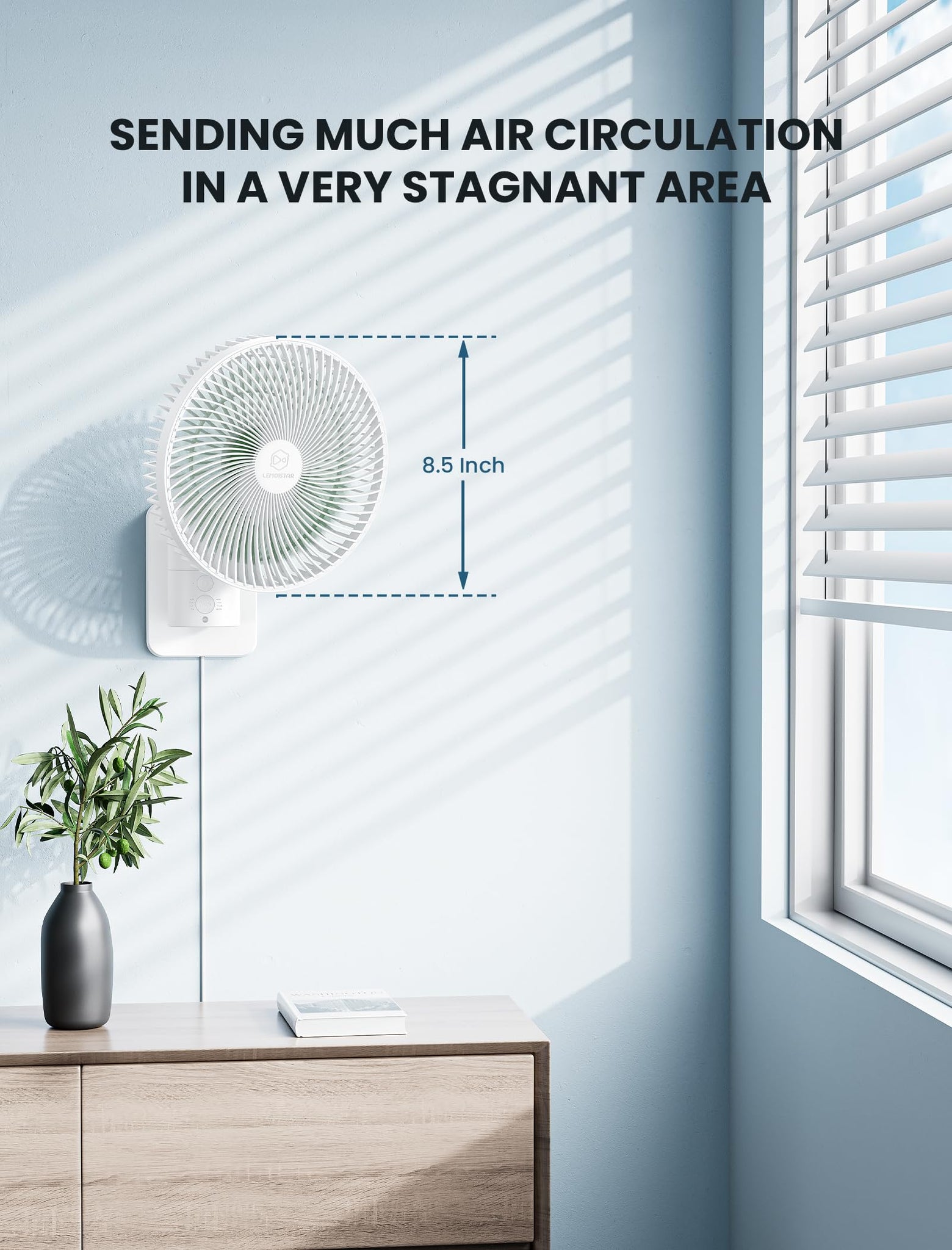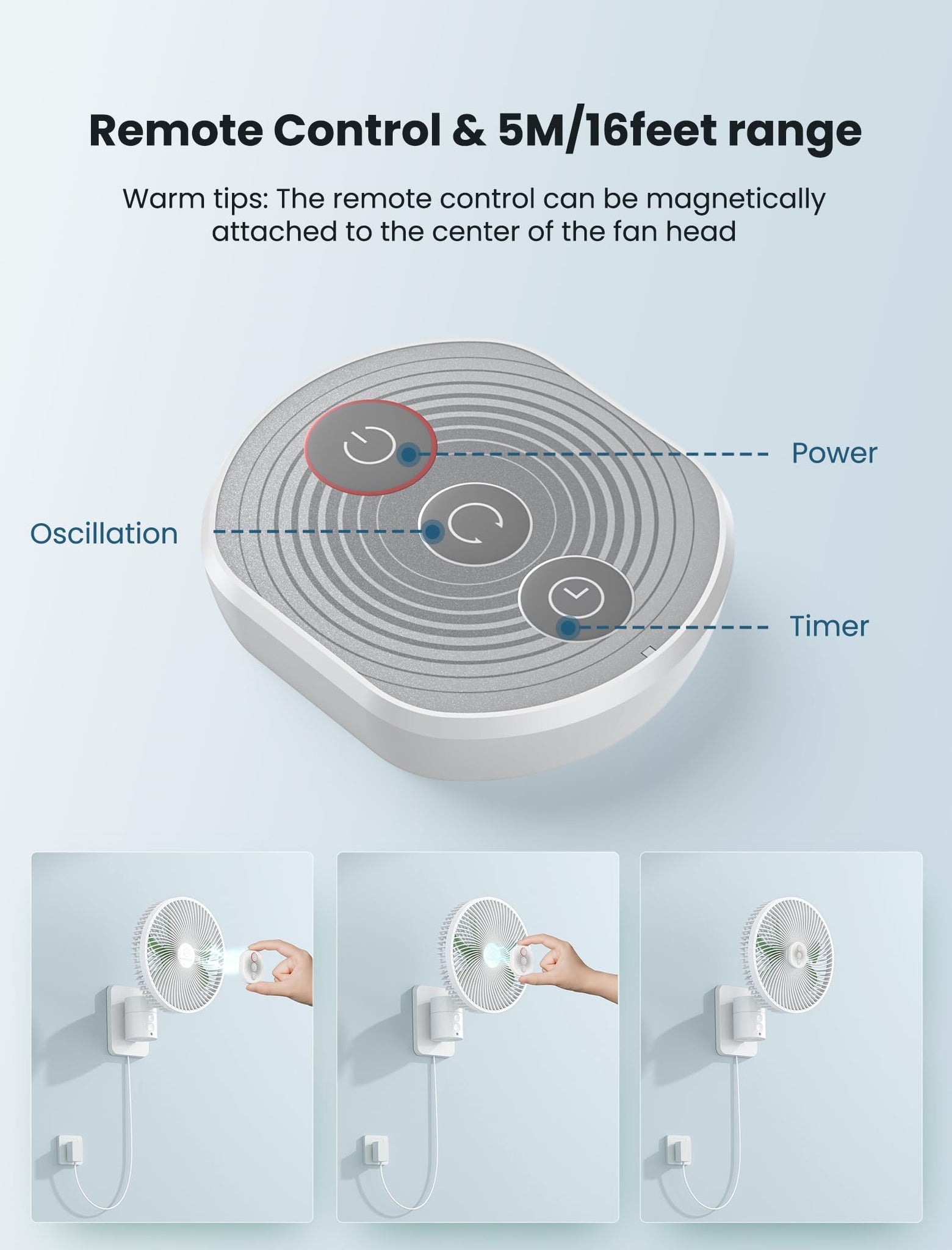 - 🙋【CONVENIENT CONTROL】🙋:This wall-mounted oscillating fan comes with a remote (includes a battery). A full-function remote lets you change the fan's speed, set timers, choose modes, and turn it on and off from afar. The magnetic remote control sticks to the fan head's center, preventing loss