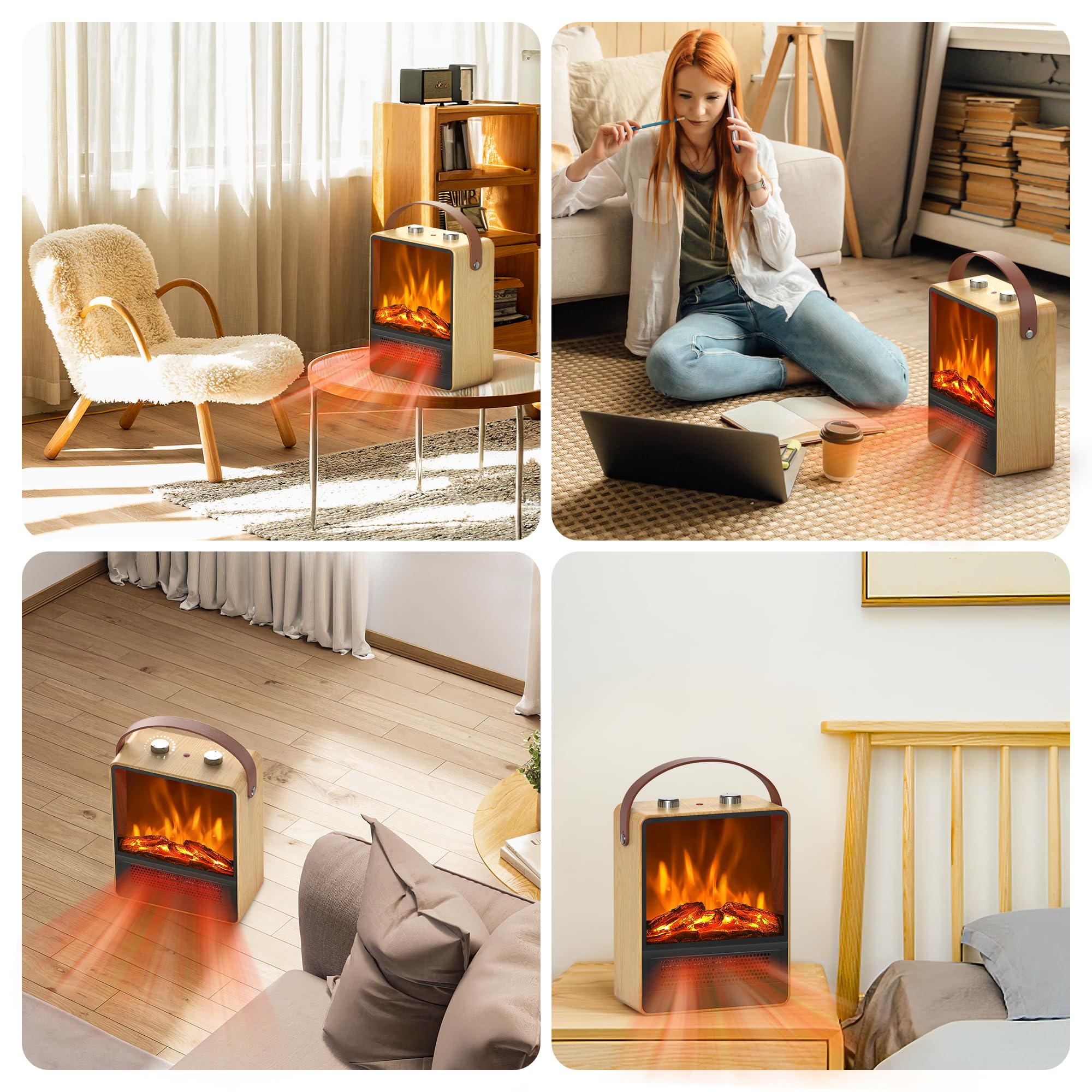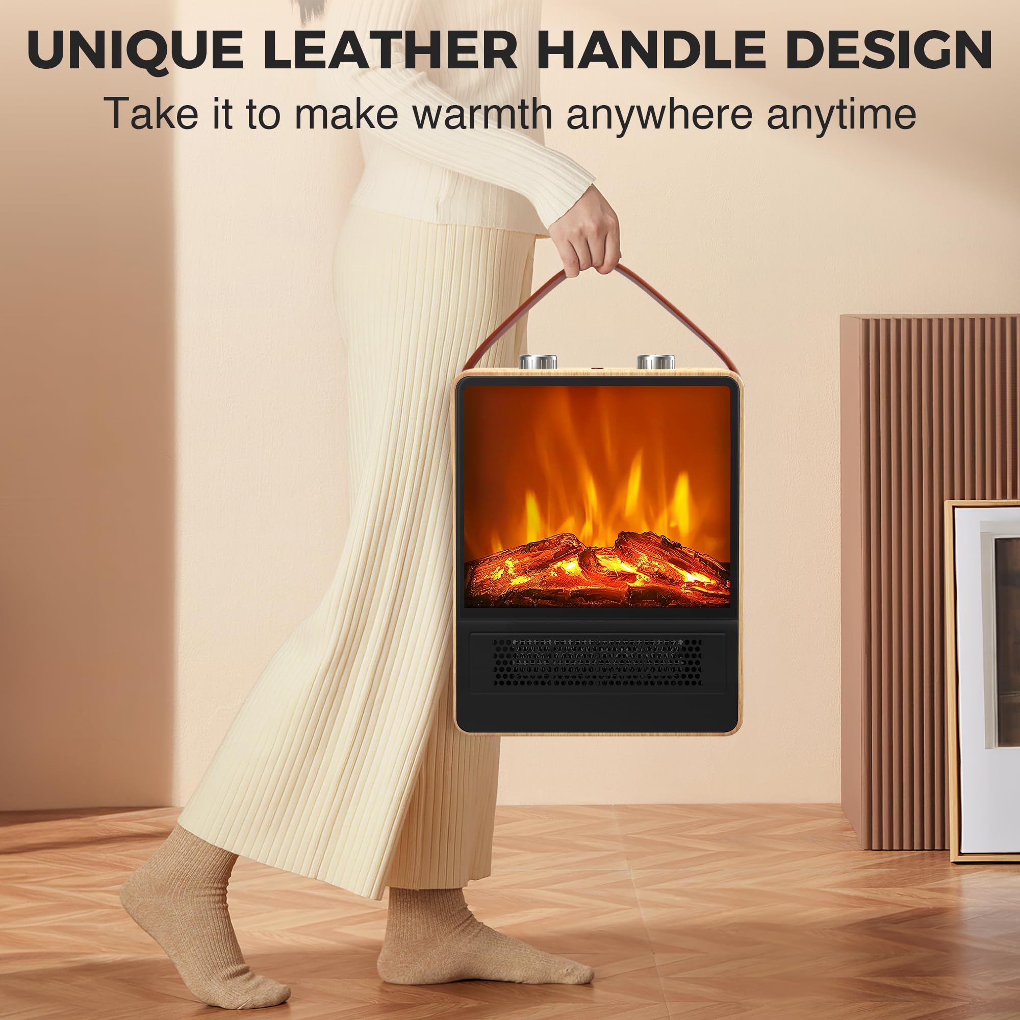 - Portable & Durable: This space heater fireplace is portable and lightweight. Featuring a high-quality belt carry handle, no matter you want to use it in your living room, dining room or bedroom, this portable heater can be easily transported.
