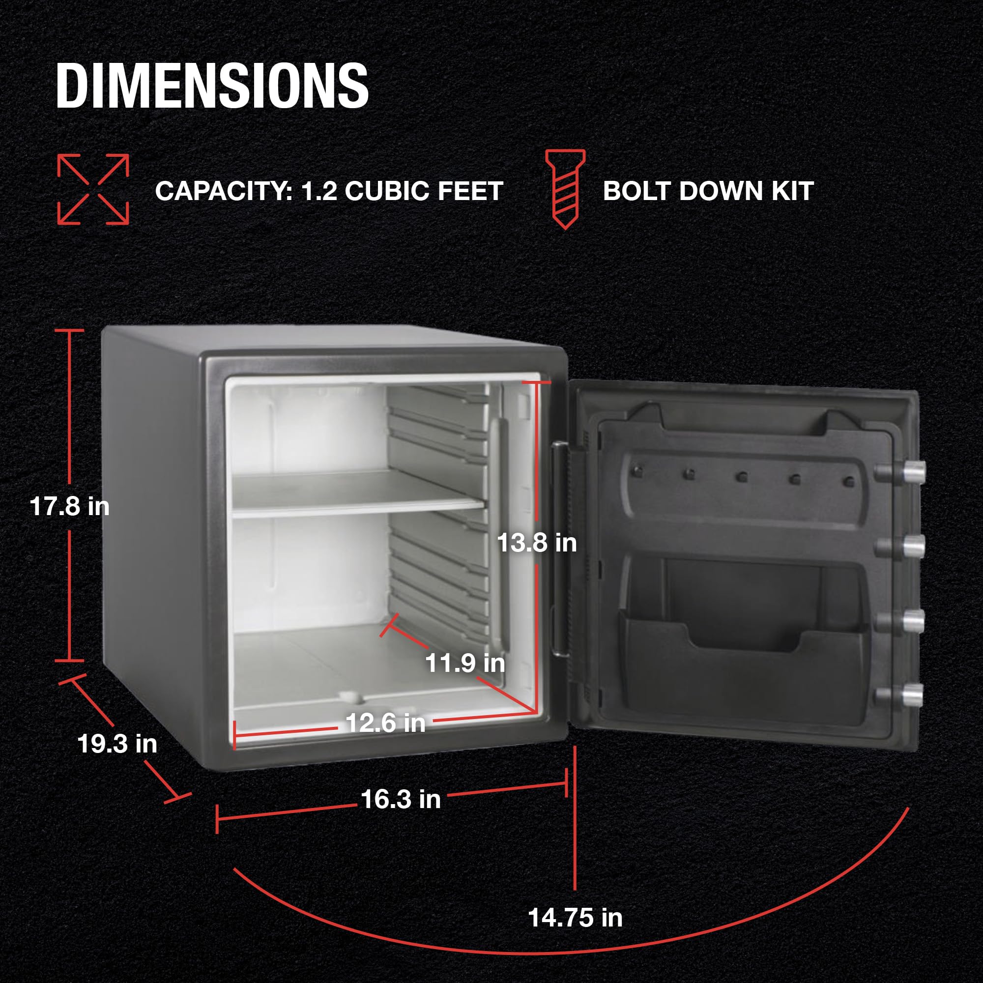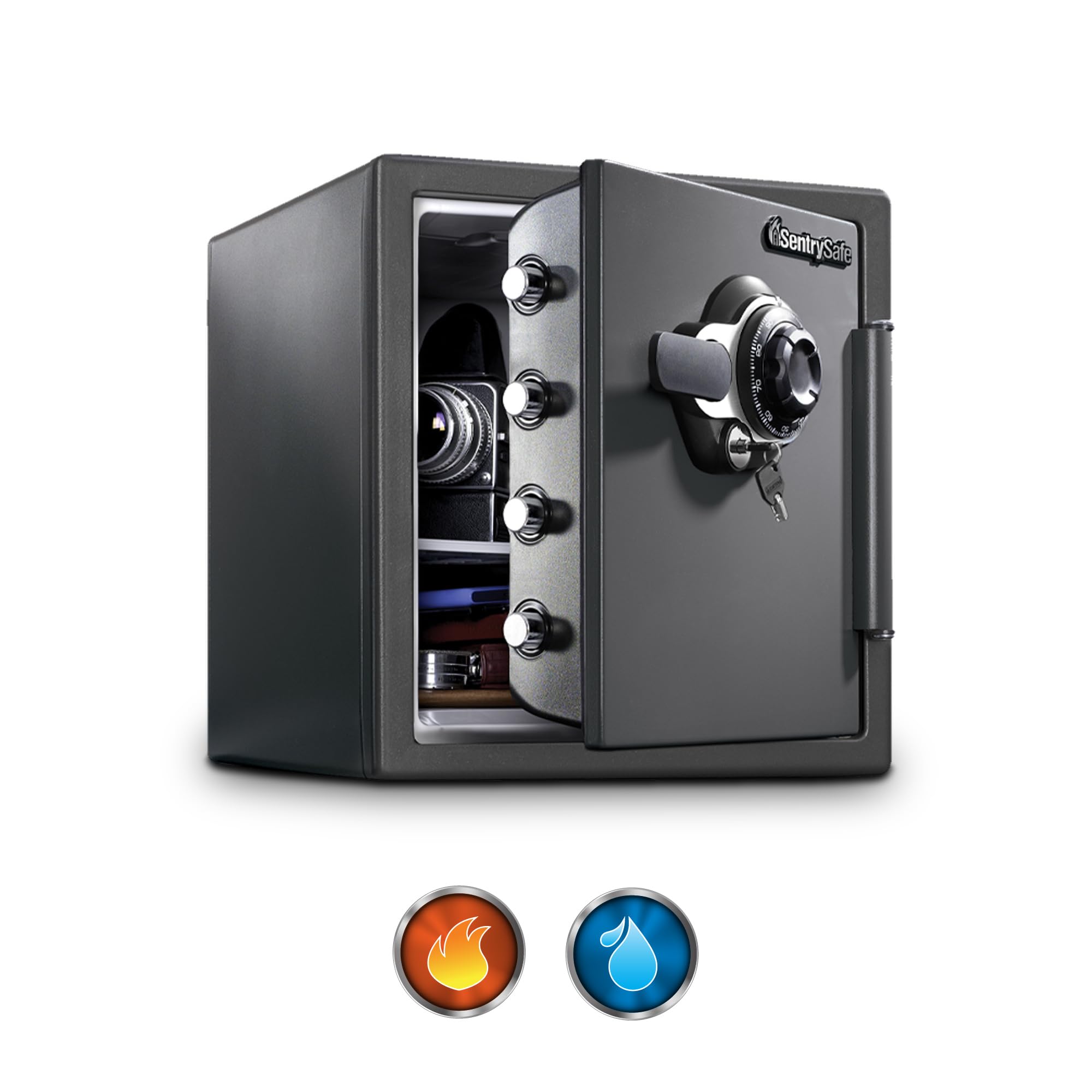 Details: Enhance the security of your home or office with the SentrySafe Waterproof and Fireproof Gray Safe Box, model SFW123DSB. Constructed from high-strength alloy steel, this durable safe ensures top-notch protection for your valuable belongings. Whether you’re securing important documents, cash, or cherished personal items, this fireproof and waterproof safe box is designed to offer unparalleled peace of mind. With its spacious 1.23 cubic feet interior, it provides ample room to store a variety of items while maintaining a compact and manageable footprint suitable for any setting – making it one of the best fireproof document safes on the market. It features an advanced combination lock that provides optimal security against unauthorized access while ensuring ease of use for those who are meant to open it. This lock box with key is engineered for enhanced reliability and precision, adding an extra layer of safety in addition to its high-level engineering. In times of crises such as fires or floods, your valuables will be well protected; this safe is UL classified to endure an hour at 1700° F and ETL verified for water resistance up to 24vhours in water. Perfect for both home and office usage, this mini safe seamlessly fits into cabinets or easily coordinates with your existing décor. Designed specifically as a fireproof cash box and document protector, every detail reinforces its primary purpose: safeguarding what matters most when it matters most.
