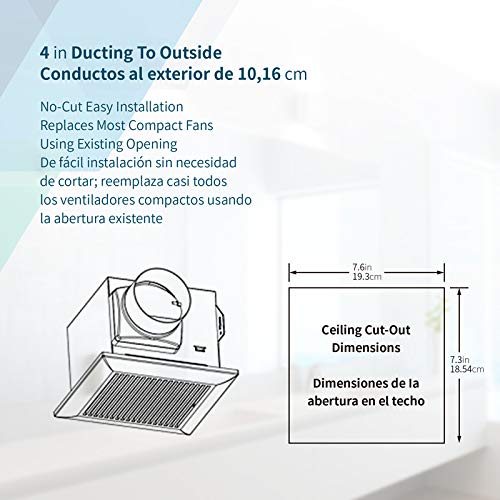 - Easy-to-Install: No cut housing with no attic access installation and replaces most small bathroom standard fans using existing opening. it can be done entirely from the room-ceiling side – no attic access needed installation.Please note that the housing height of this fan is 6 inches. If you replace an old fan with a housing height of 4 inches, make sure that the ceiling is installed deep enough before replacing.