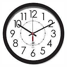- Round wall clock features a 14-1/2" black frame, 12-3/4" UV-protected lens and white face