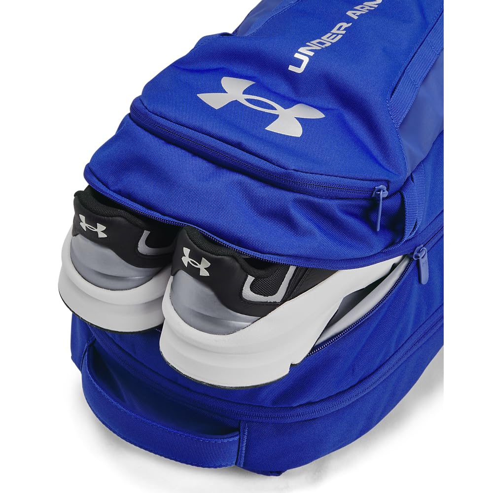 This backpack does it all. It's water-repellent for the rain, tough as nails, comfortable as anything, and has all the pockets you need to hold all your stuff. Water-resistant UA Storm technology keeps your stuff dry. Soft-to-the-touch top coat on material for added durability. Secondary compartment can be dual-purposed as a shoe/laundry pocket. Secure zip front pocket for essential item storage & side water bottle pocket that fits 32oz bottle. Soft-lined laptop sleeve—holds up to 16" MacBook Pro® or similarly sized laptop. Molle webbing for additional attachment points. Top grab handle. . . . 100% Polyester.