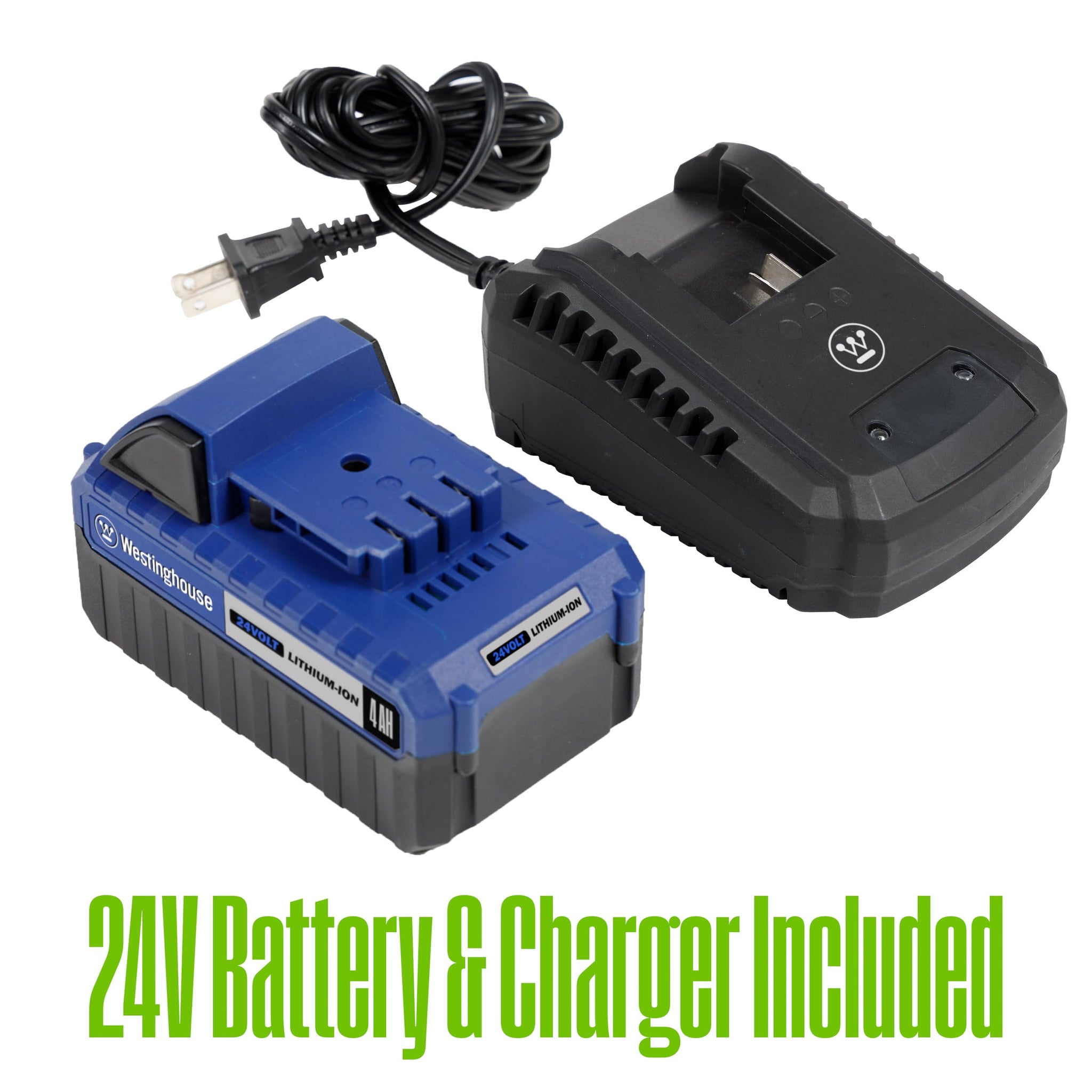 - BATTERY POWERED FREEDOM: Comes with one 4Ah 24V lithium-ion battery and 2.2A fast charger that fully charges in 1.8 hours for a working time of 25 minutes for 2 inches of snow