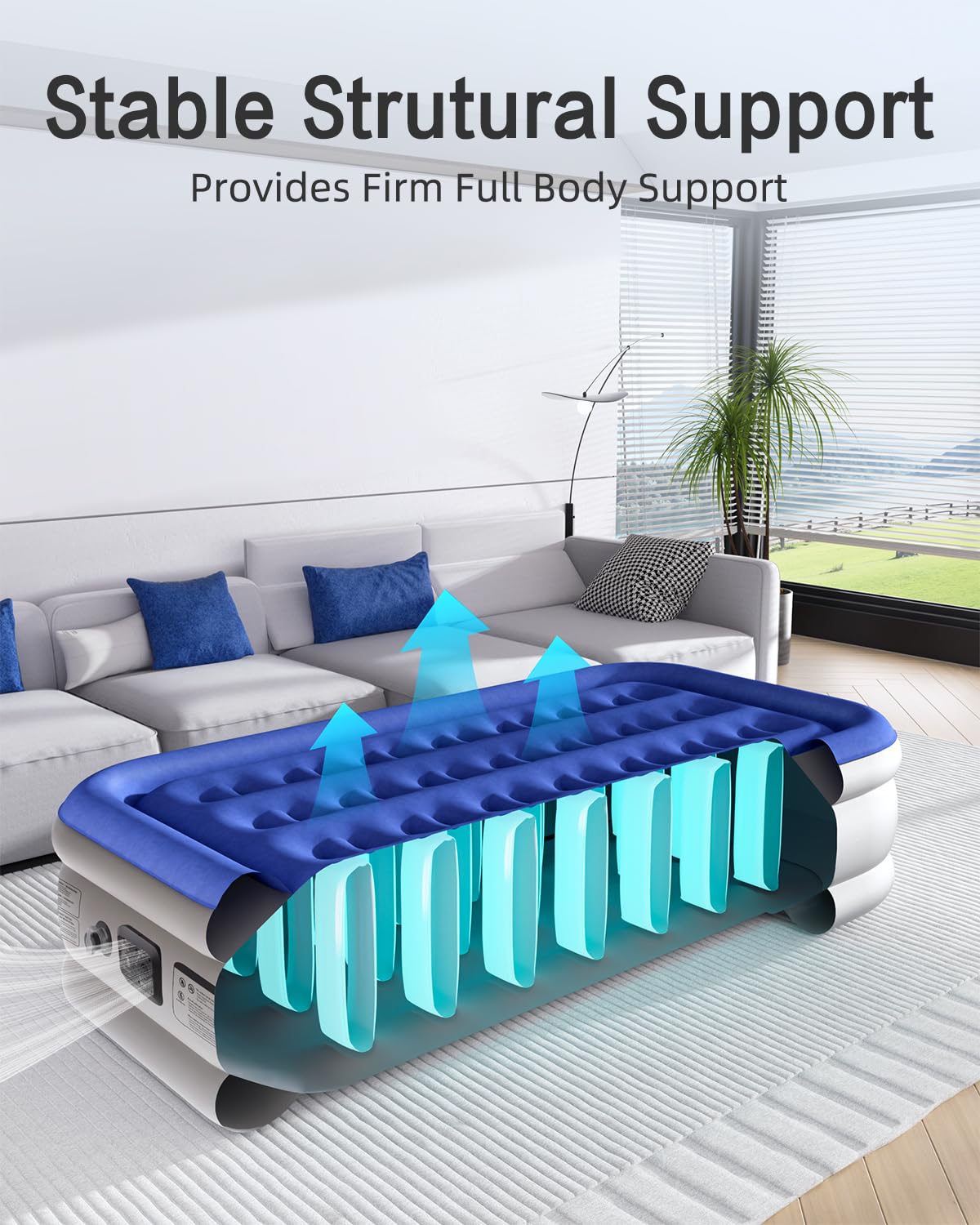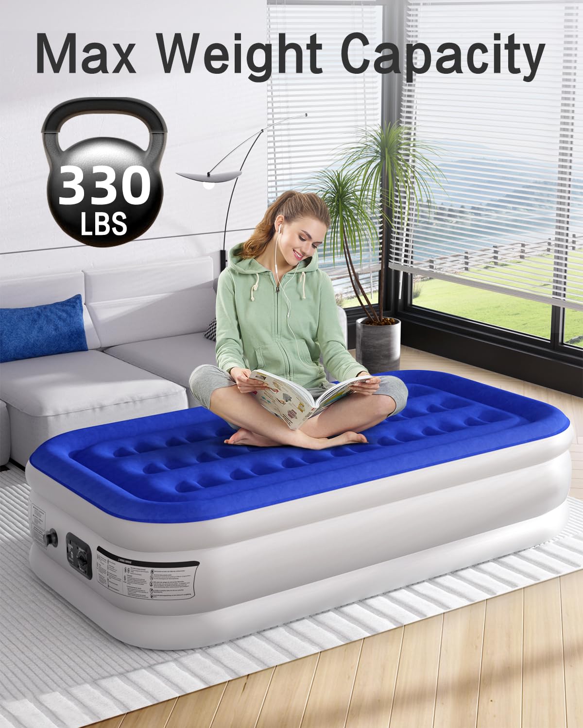 - HIGH QUALITY-Upgrade of material waterproof and puncture resistant and more healther,inflatable mattress twin ergonomic design and exquisite craftsmanship stable strutural support provides firm full body support 330 LBS.
