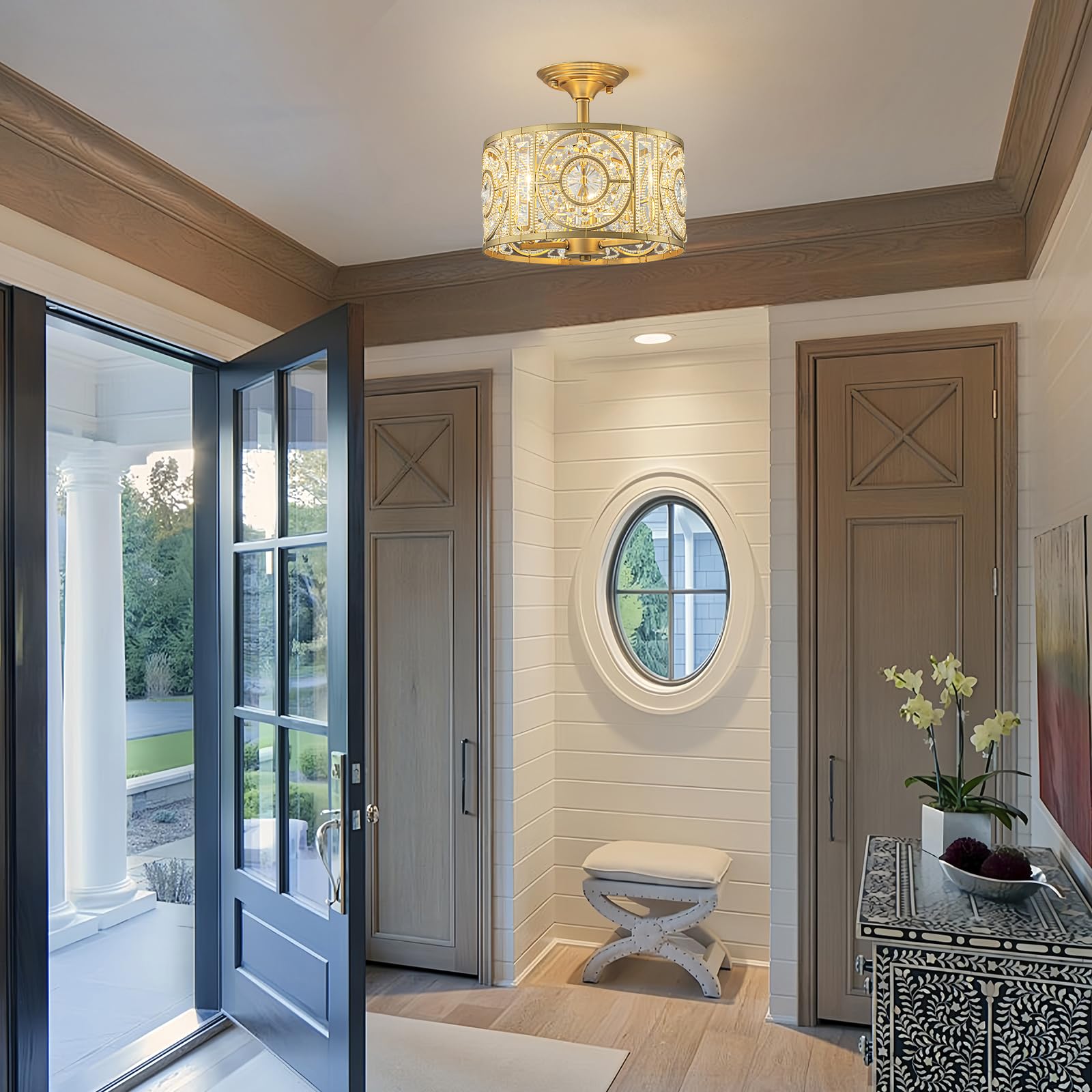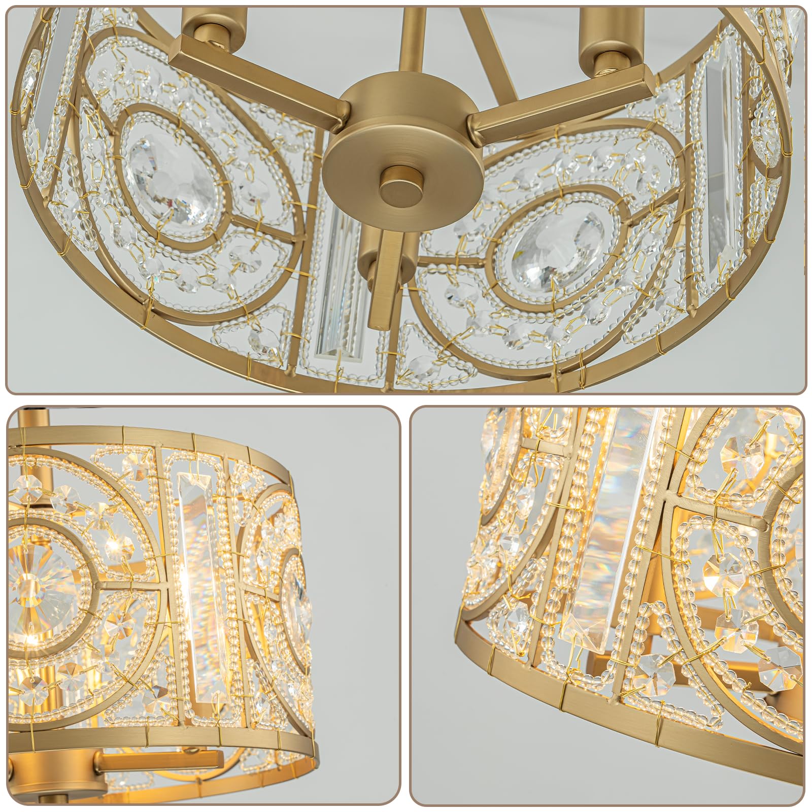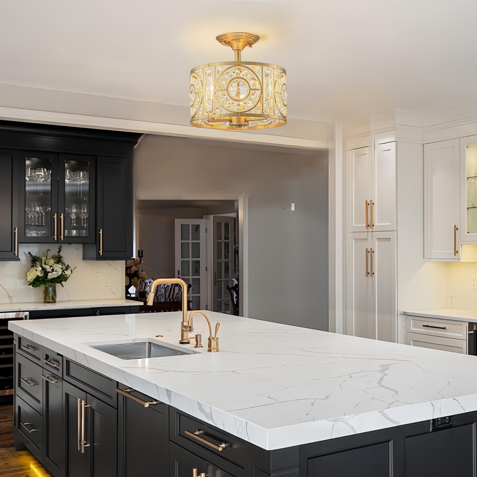 - đź’ˇSemi-flush mounting design: This ceiling chandelier provides a huge aesthetic impact without taking up much ceiling space, presenting a clean, streamlined appearance. It is an excellent choice for low ceiling areas such as hallways, porches, entryway, dining rooms, kitchens and bedrooms etc., and also makes a stunning and practical new home gift for friends.